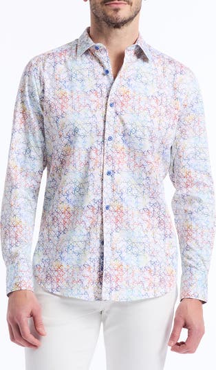 Brightened with rainbow-hued geometries, this crisp cotton shirt delivers easy-moving comfort and a look that works weel tucked or untucked.