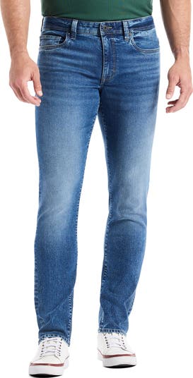 Fading and whiskering further the causal-cool styling of these skinny jeans cut from stretch-kissed denim in a medium wash.