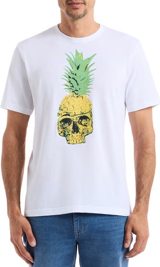 Add bold rebellion to your laid-back lineup with this cotton T-shirt featuring a pineapple skull graphic.