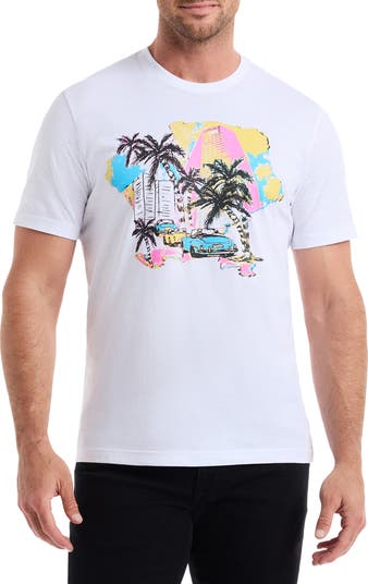 Dream up your next tropical vacation with this cotton knit T-shirt featuring a vibrant city graphic.