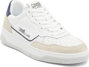 Show off cool retro style in this colorblock leather and suede sneaker constructed with a perforated toe box and a skate-inspired grip sole.