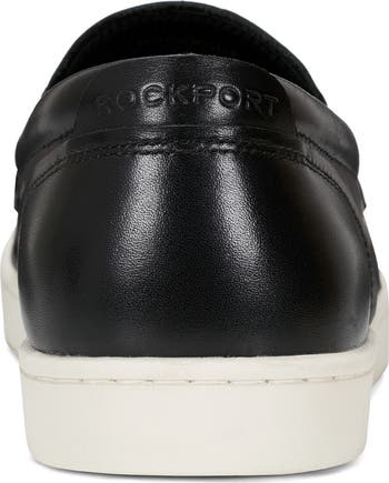 A moc-stitched toe and a solid vamp strap frames the polished loafer silhouette of slip-on sneaker updated with a sporty white grip sole for comfortable everyday wear.