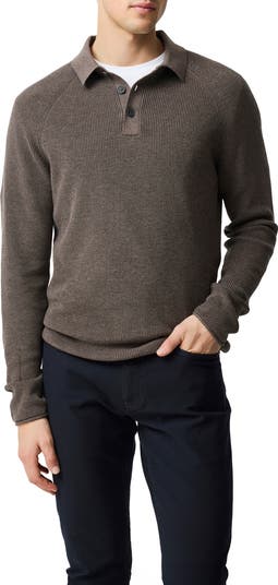 Look like you're between adventures anywhere you go in this ribbed cotton polo-sweater knit with roomy raglan sleeves and a rolled raw edges.