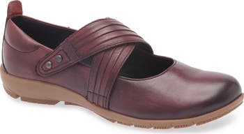 An everyday walking flat shaped from rich leather is styled with crisscrossing topstitched straps and is grounded by a sturdy rubber sole.
