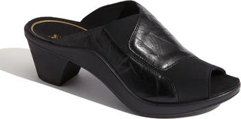 Soft leather panels hug the cushy microfiber vamp of a built-for-comfort mule fitted with a contoured footbed.