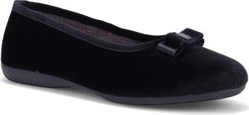 A dainty bow and velvet upper add timeless charm to a luxe ballet flat set on a cushioned footbed and slip-resistant sole.