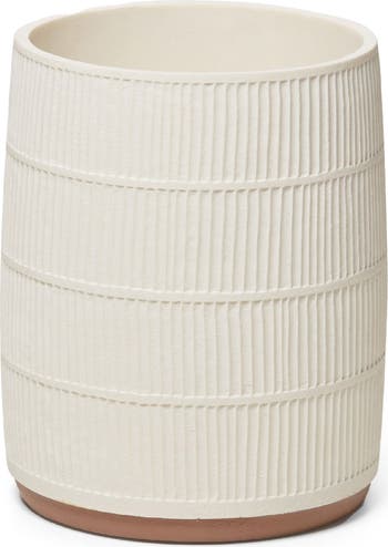 Sophisticated and modern, this textured resin wastebasket adds contemporary appeal to your home.