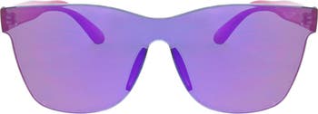Sleek and striking, these rimless shield sunglasses feature signature branding on the lenses and temples for a statement look.