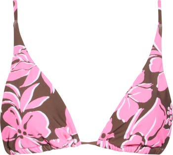 A tropical floral print furthers the vacation-ready vibe of a strappy bikini top constructed from durable stretch fabric for daylong comfort and shape retention.