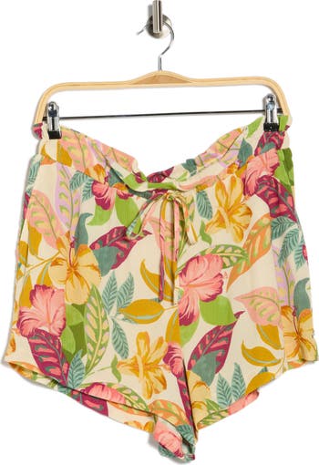 Unwind by the water or wander the shoreline in these cover-up shorts detailed in a vibrant tropical floral pattern.