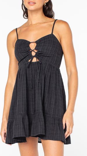 A naturally breathable cotton blend keeps you feeling breezy in this fit-and-flare sundress made with lace-up detailing in the front.