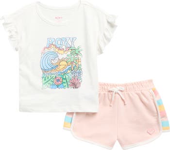 Prepare your kiddo for beach or sunny days with this set featuring a logo‑adorned T‑shirt and coordinating shorts.