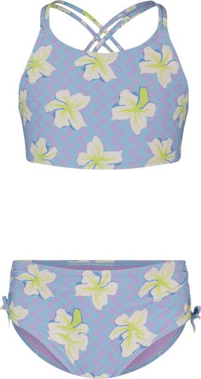 Your kiddo can explore the surf and sand in a floral-patterned two-piece swimsuit that's sure to be at the top of their beachgoing rotation.