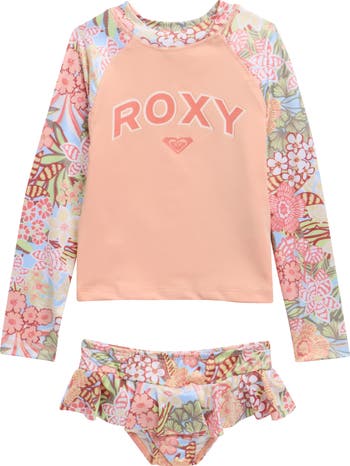 Beach-filled weekends call for the comfort of this rashguard top and bikini bottoms set that's made with plenty of stretch for ease from surf to sand and beyond.