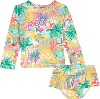Your little tot can enjoy the surf and sand in this protective set that pairs a long-sleeve rashguard top with matching bottoms.