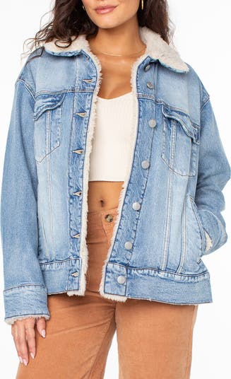 A plush faux-fur lining adds an understated update to this longline denim jacket that keeps you feeling cozy without sacrificing style.
