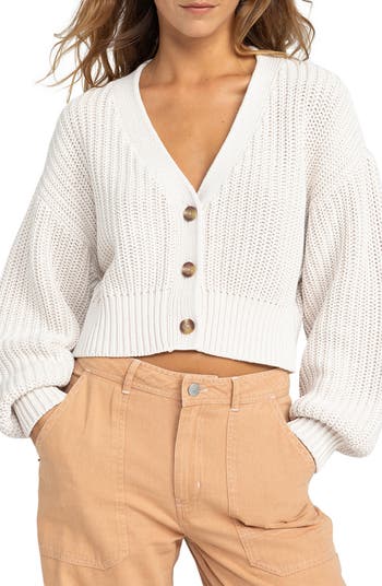 This chunky shaker-stitch cardi is slightly cropped and finished with a soft hand and washed-down fade.