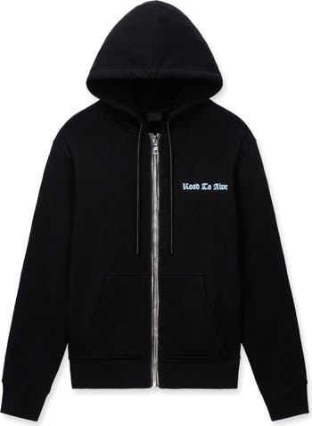 Bold, branded graphics lend heritage appeal to a zippered hoodie crafted from cotton fleece to keep you warm and comfortable.