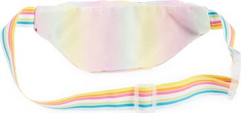 Colorful accents pop against the glitter-dusted upper of a kid-approved belt bag designed with an adjustable webbing strap perfect for pairing with your little trendsetter's favorite outfits.