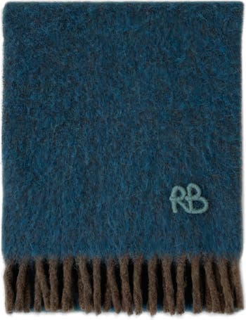 Tonal monogram embroidery brings understated branding to this cold-weather staple made with a luxuriously warm blend of wool, alpaca and mohair and edged with fringe.