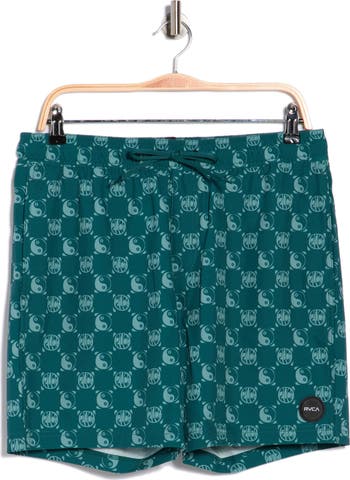 Move from the beach to the boardwalk with ease in these drawstring swim trunks cut from checkered fabric and outfitted with pockets.