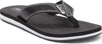Perforations at the straps add breathable comfort to this flip-flop sandal grounded by a flexible sole.