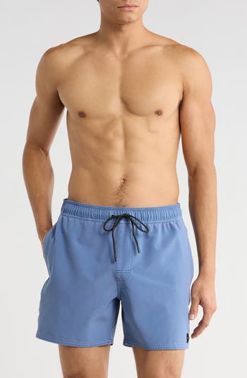 Beach-ready shorts made from pigment-overdyed fabric with four-way stretch are topped with a comfy elastic waist and feature side and back pockets for convenience.