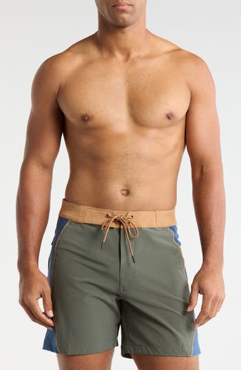 Breeze through your beach days in these comfortable board shorts topped with an easy lace-up closure.