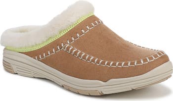 Plush faux fur adds a cozy flourish to this everyday mule featuring decorative stitching and an anatomical insole with enhanced arch and heel support for all-day comfort.