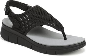 This thong sandal made with breathable knit straps is built for a woman's quadricep muscle with a narrower heel, roomier toe and contoured cushioning. UltraFlex grooves on the outsole help keep you surefooted.