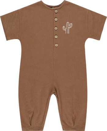 Pure-cotton fabrication keeps your little one comfy and cozy in this short-sleeve romper that's a perfect choice for laid-back days.