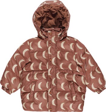 Your little love can brave any forecast in this patterned puffer jacket designed with a roomy hood and spacious front pockets to keep hands warm or essentials safely stored.