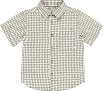 A bold geometric print distinguishes a button-up shirt made from pure cotton fabric for a crisp fit with every wear.