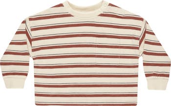 A relaxed fit enhances the comfort of a crewneck T-shirt made from breathable cotton and framed by long sleeves for comfort on chilly-day outings.