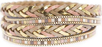 Add a dazzling touch to your everyday outfit with this wrap bracelet featuring braided leather.