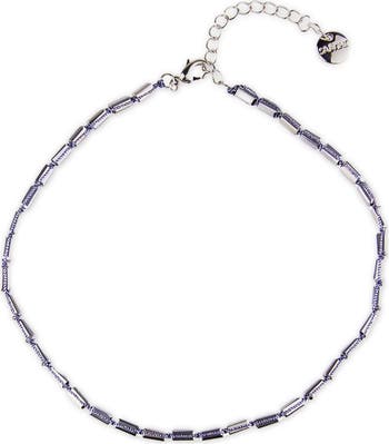 Baguette-cut glass beads catch the light on this minimalist choker necklace that's perfect to layer or wear solo.