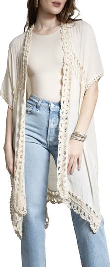 Made from soft fabric and airy crochet stitches, this lightweight and whimsy duster is calling summer.