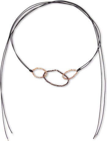 Dainty crystal beads illuminate the oval links on this corded choker necklace that brings just-right sparkle to everyday looks.