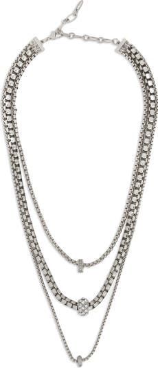 Crystal-adorned pendants and a variety of chains define a necklace that brings a touch of shimmer and shine to your casual looks.