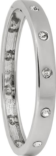 Show off glamorous shine with this stackable hinged bangle bracelet accented by sparkling crystals.