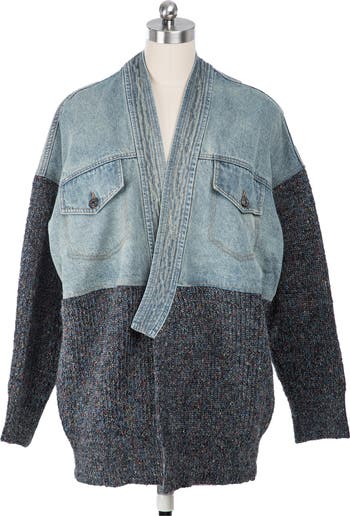 A hybrid jacket that pairs two favorites - a colorful marbled knit cardigan and classic denim jacket, is a must-have essential to top off your stylish ensemble.