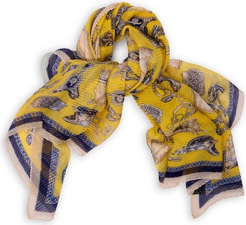 Add effortless flair to any look with this crinkle-textured scarf covered in a equestrian-inspired print.