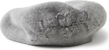 Level up your look when you accessorize with this boater hat that features embroidery and shimmering crystals.