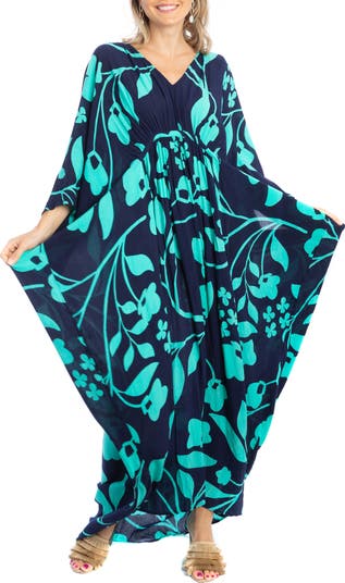 Perfect your poolside look in this lightweight floral print kaftan that features a cinched in waist and asymmetrical hemline.