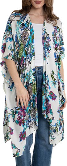 Blossoming flowers in a colorful palette draw the eye to a lightweight ruana that instantly elevates any ensemble.