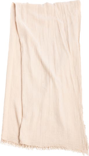 Love to layer this all-cotton gauze scarf trimmed with fluttery eyelash trim.