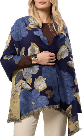 Metallic threads illuminate the pretty blooms that cover a lengthy scarf that delivers chic style and a perfect amount of warmth to any look.