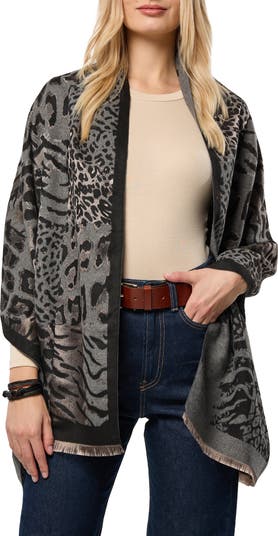A mix of animal spots and stripes brings an eclectic vibe to this lightweight woven scarf that tops your look with a perfect finishing touch.