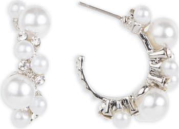 Lustrous pearls in mixed sizes and dainty crystals enrich these polished hoops that bring a touch of glamour to your looks.