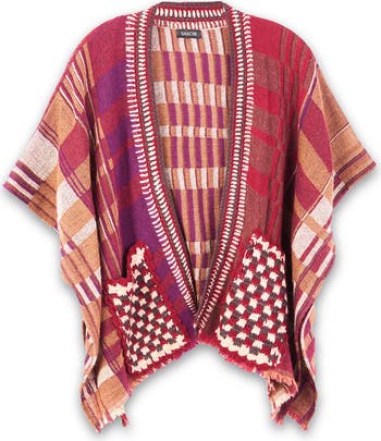 Add a free-spirited finishing touch to your look with this plaid topper styled with crochet patch pockets.